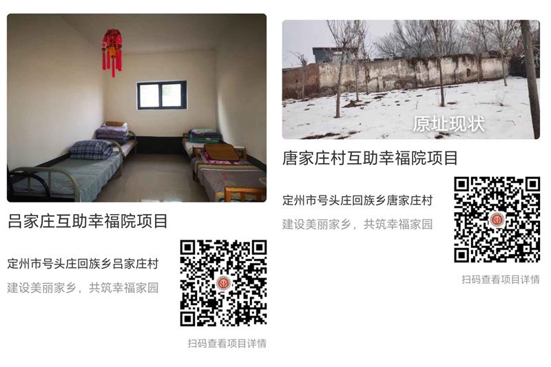 我市号头庄乡高度重视慈善工作和慈善力量,率先申请启动项目上线。该乡镇所申报的吕家庄、唐家庄村作为首批试点村社已通过三级审核,顺利于2024年1月份正式开通“互助幸福院”项目,为两个幸福院在线上公开募集项目建设、维护维修及爱老敬老运营资金。