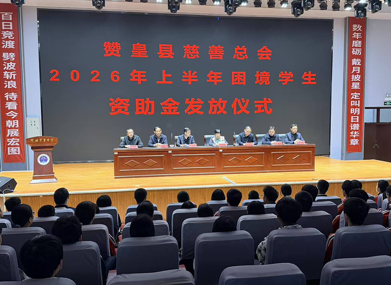 (通讯员 郝毅辉)2026年4月10日上午,赞皇中学阶梯大教室爱心涌动,暖意融融,赞皇县慈善总会在这里举行了今年上半年困境学生资助金发放仪式,为来自赞皇中学、赞皇一中、邢郭中学、旭光学校的82名困境学生发放资助金。